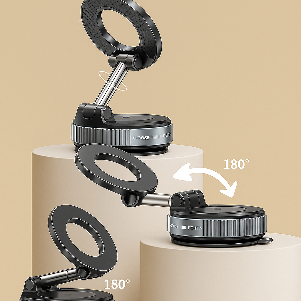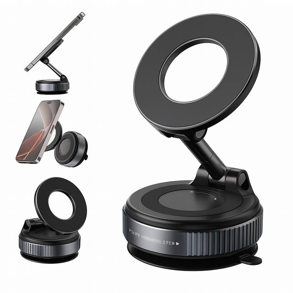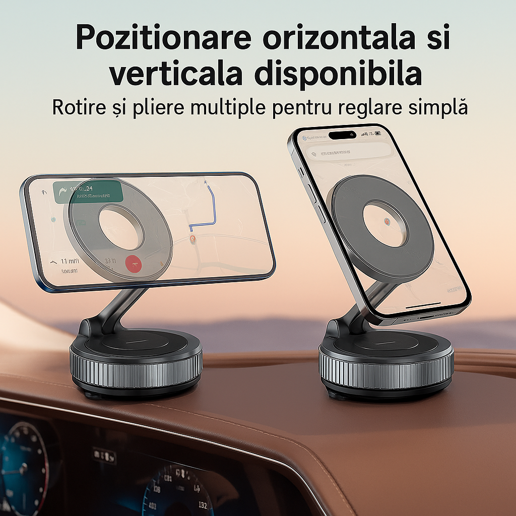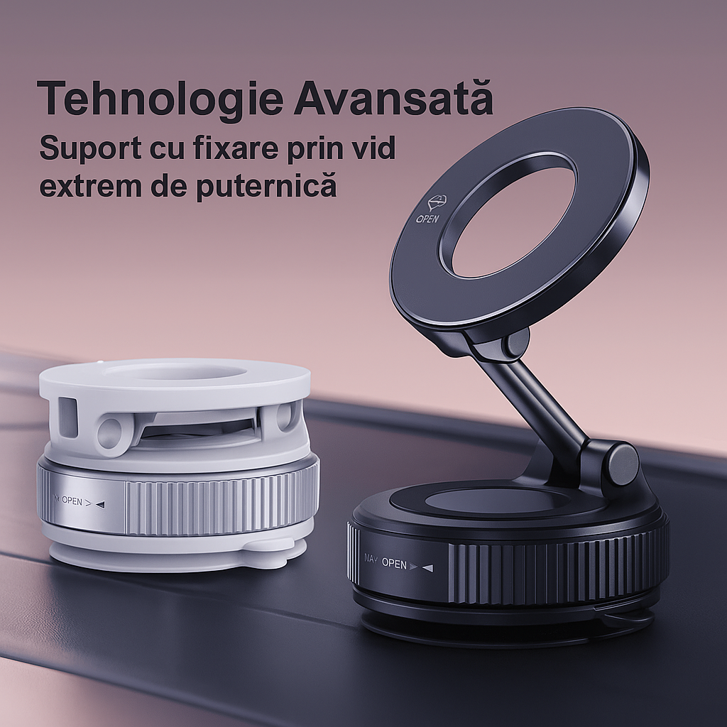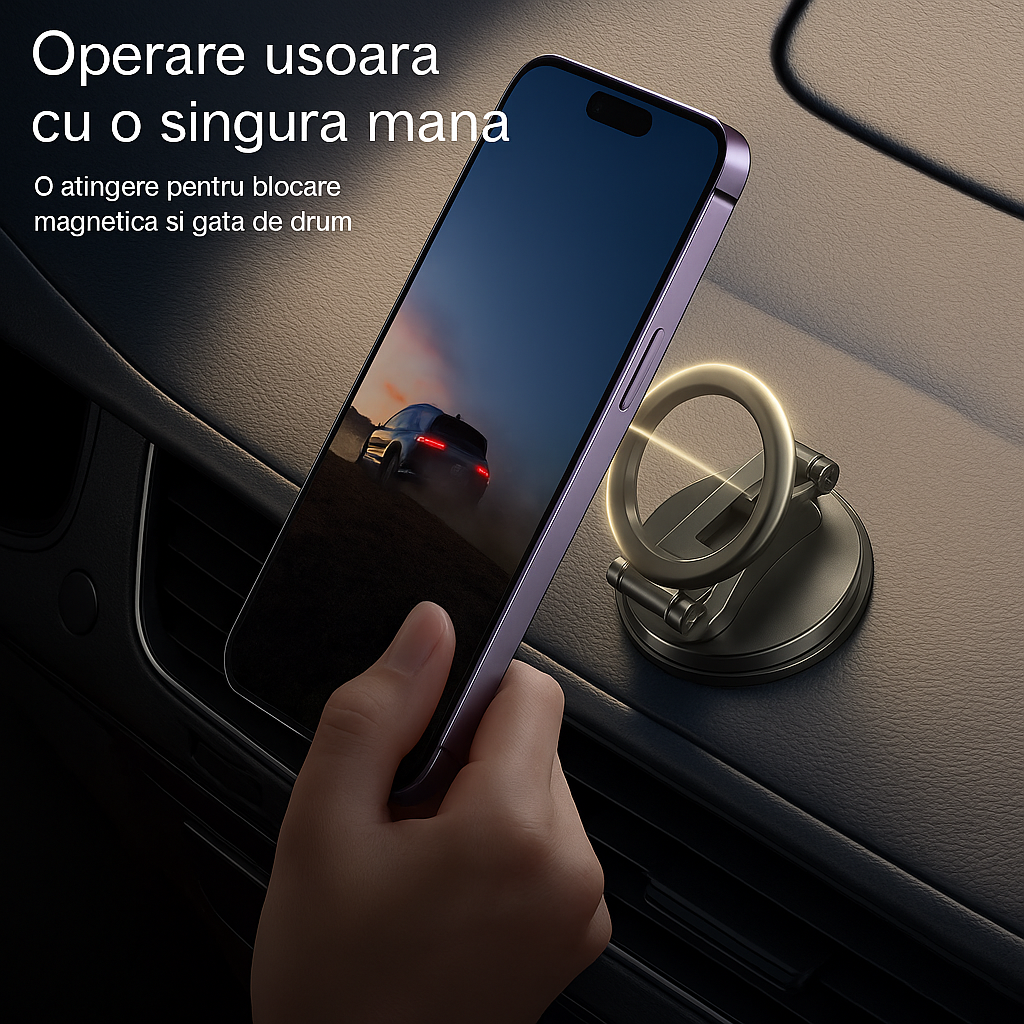 Tehnologie avansată de montare în vid și nano-gel, magneți N55 de putere industrială, design rafinat realizat din materiale premium. Eleganță, siguranță și libertate totală de montare, oriunde doriți. Un accesoriu de lux care vă menține telefonul la locul său, mereu.