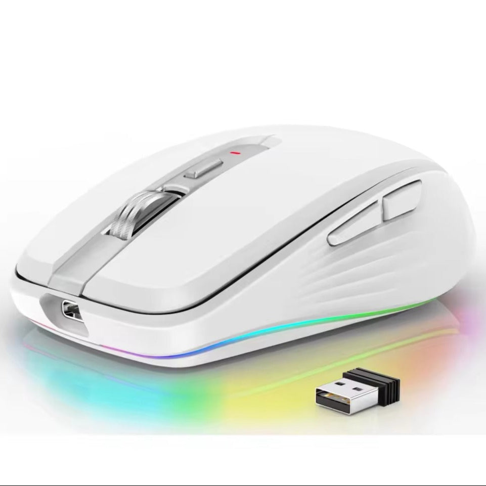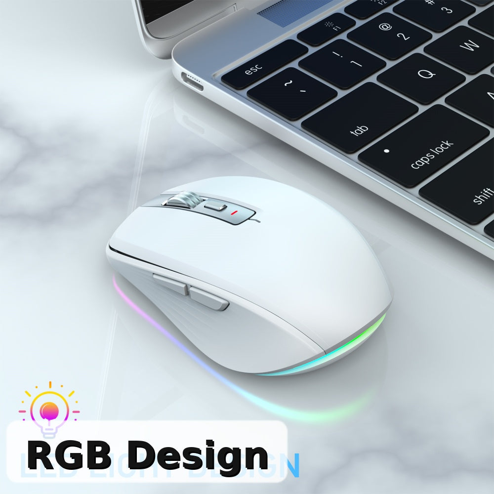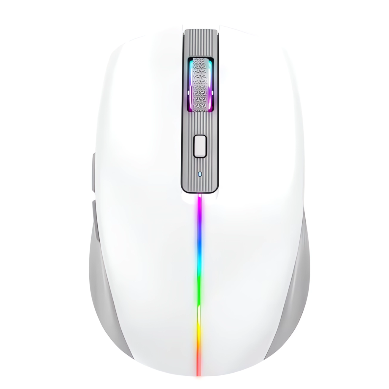 Mouse wireless Bervolo® Nexus Pro, conectivitate simultană la 3 dispozitive, DPI reglabil, iluminare RGB, reîncărcabil USB tip C, clic silențios, ergonomic, alb