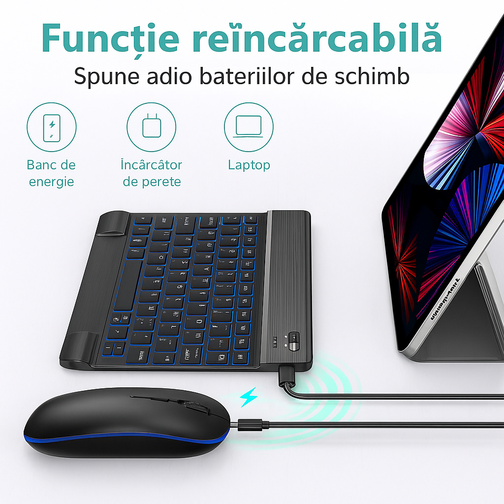 Bervolo® BackLight SlimCharge – Tastatură Bluetooth ultra-subțire cu iluminare inteligentă și încărcare Type-C