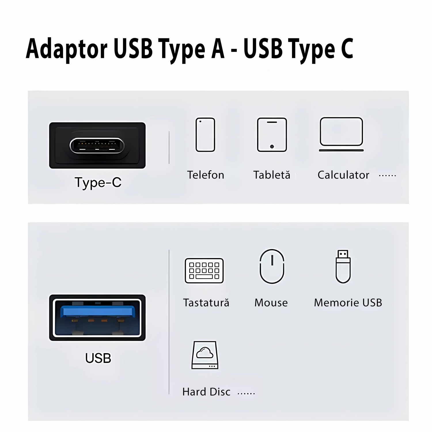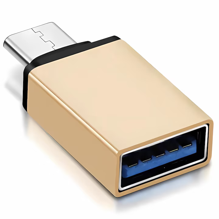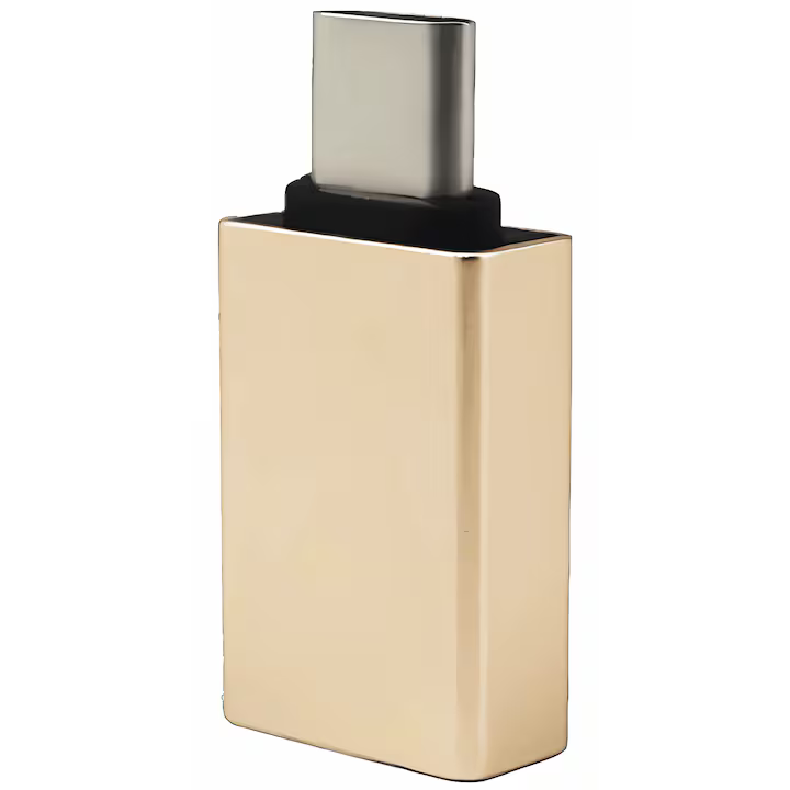 Adaptor Bervolo® USB-C la USB-A 3.0, încărcare rapidă, design premium din aluminiu, auriu