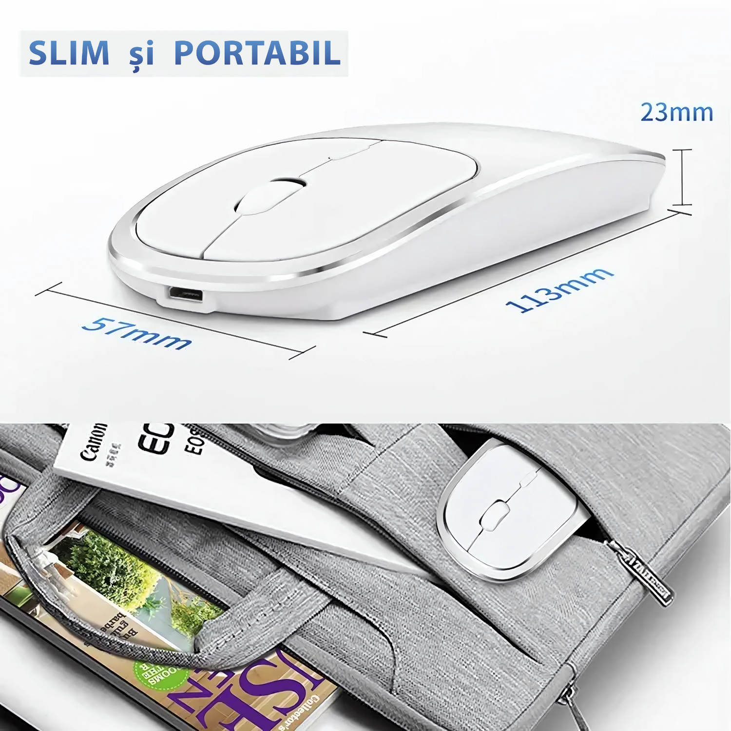 Set de 2 șoareci wireless Bervolo® Metal X Dual, USB și Bluetooth 5.1, reîncărcabil, Windows, Mac, Android, baterie de 600 mAh, DPI reglabil 800/1200/1600, argintiu