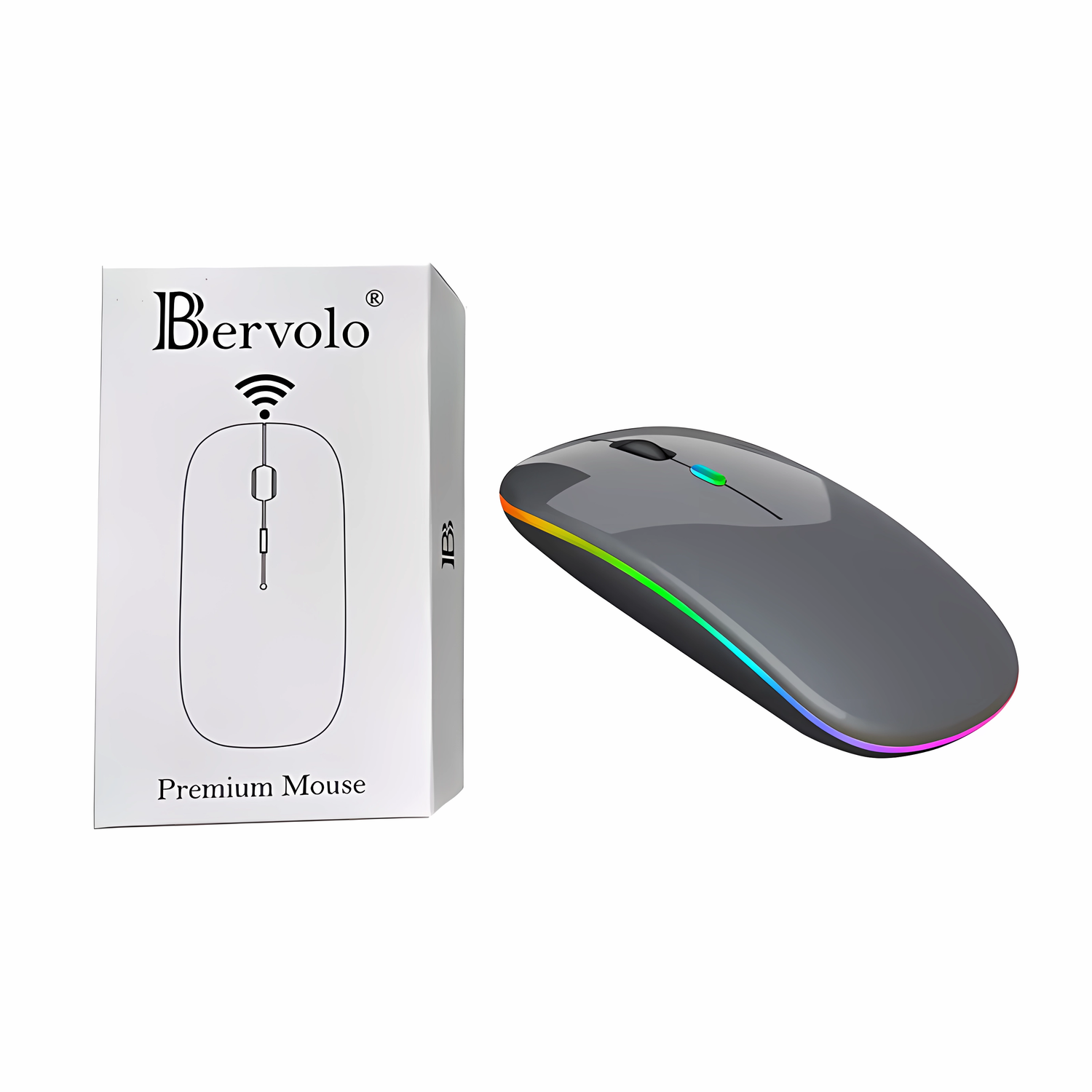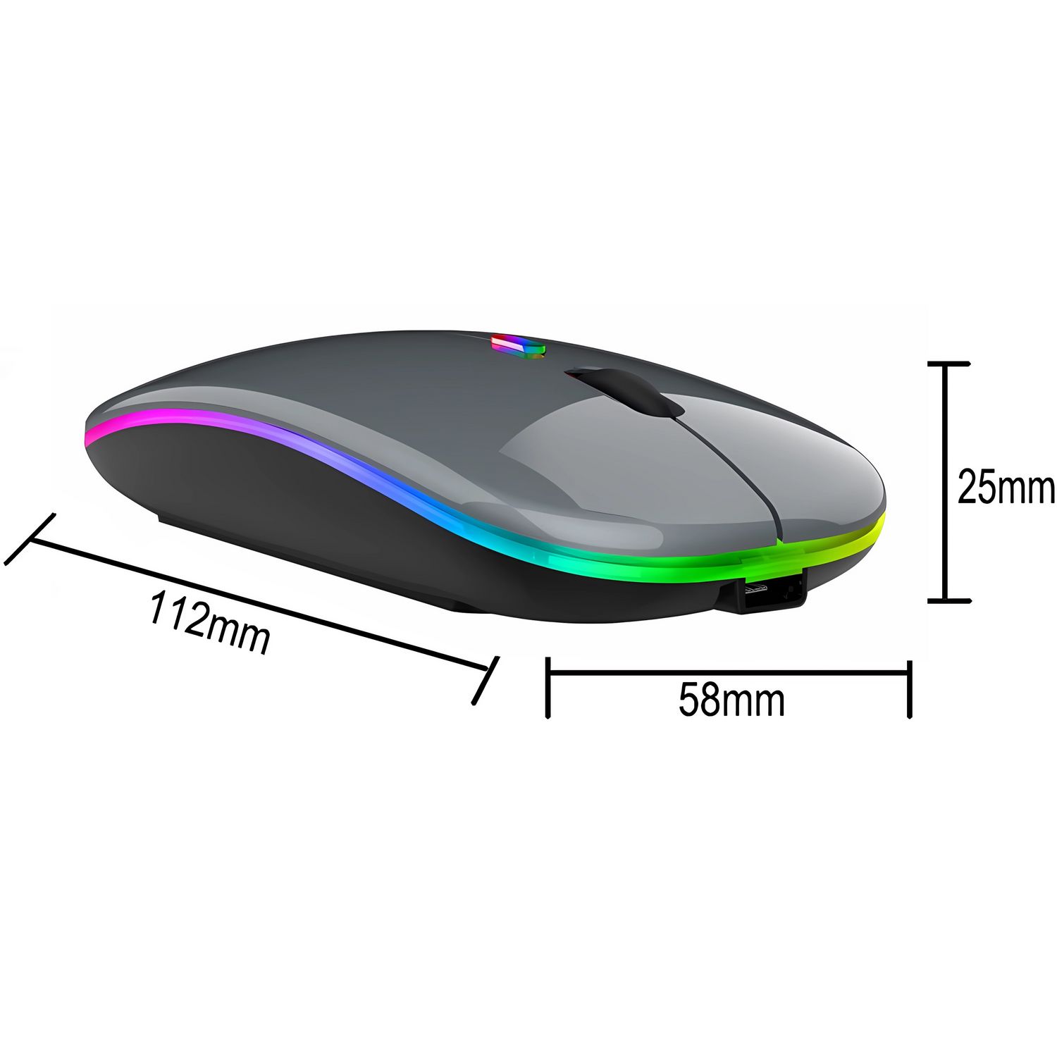 Set de 2 mouse-uri Bervolo® RGB, USB și Bluetooth dual wireless, ultra-subțiri, clic silențios, baterie reîncărcabilă, lumini colorate, DPI reglabil 800/1200/1600, gri spațial